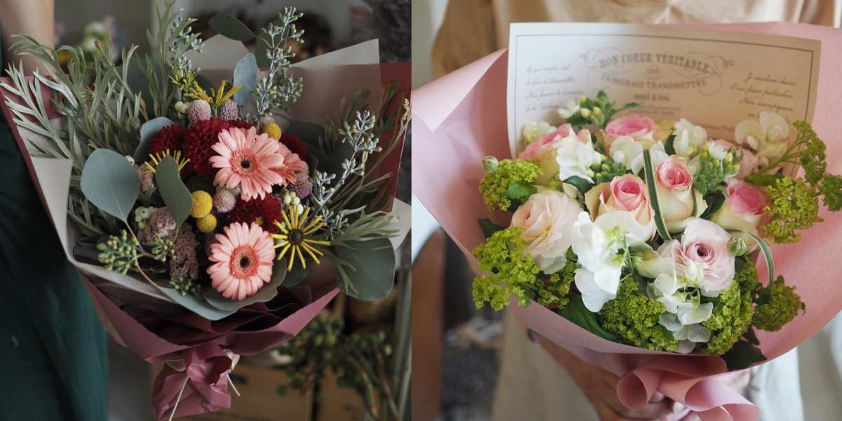 季節の花を中心に、色合いや雰囲気、ご予算に合わせてオーダーメイドも可能です。華やかで存在感のあるデザインから、上品で落ち着いたスタイルまで幅広く対応。贈る相手のイメージに合わせた最適な一束をご提案します。花まる工房へ「店頭受取」・「ご指定配送」も対応し、急ぎのご注文もご相談いただけます。