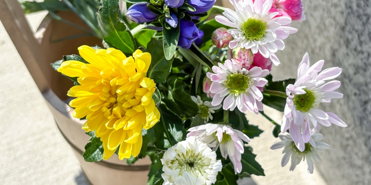 法事・命日・お悔やみなど、故人を偲ぶ場にふさわしい供え花をご用意します。 白を基調とした落ち着いたアレンジから、ご希望に合わせた色合いの制作も可能です。 ご自宅用・お届け用どちらにも対応し、心を込めて丁寧にお作りします。急ぎのご注文にもできる限り対応し、大切な想いを花に込めてお届けいたします。